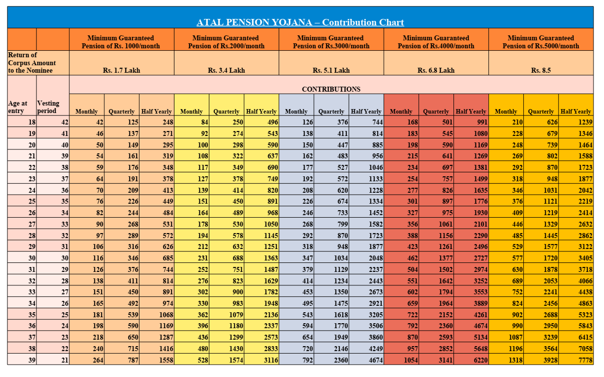 - Guaranteed monthly pension for subscribers, ranging from Rs. 1,000 to Rs. 5,000 per month.